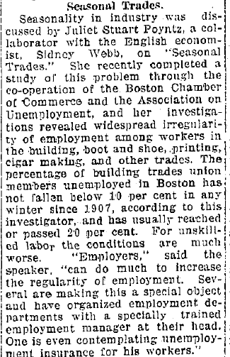 Poyntz also did some work with the American Association for Labor Legislation (AALL). The AALL advocated a federal health insurance program based on those in Europe. Poyntz did research for it on women’s labor conditions and unemployment.