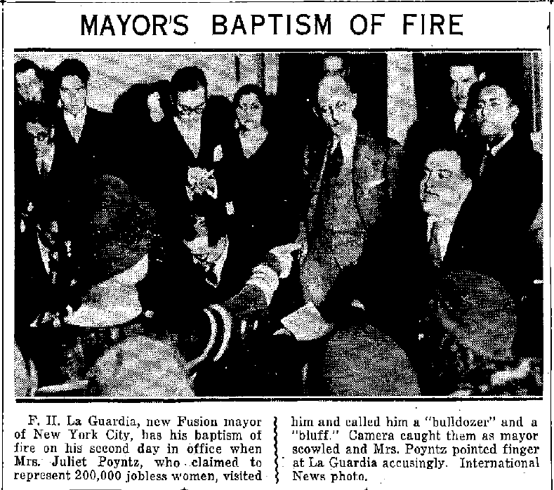 Juliet Stuart Poyntz points at Mayor La Guardia